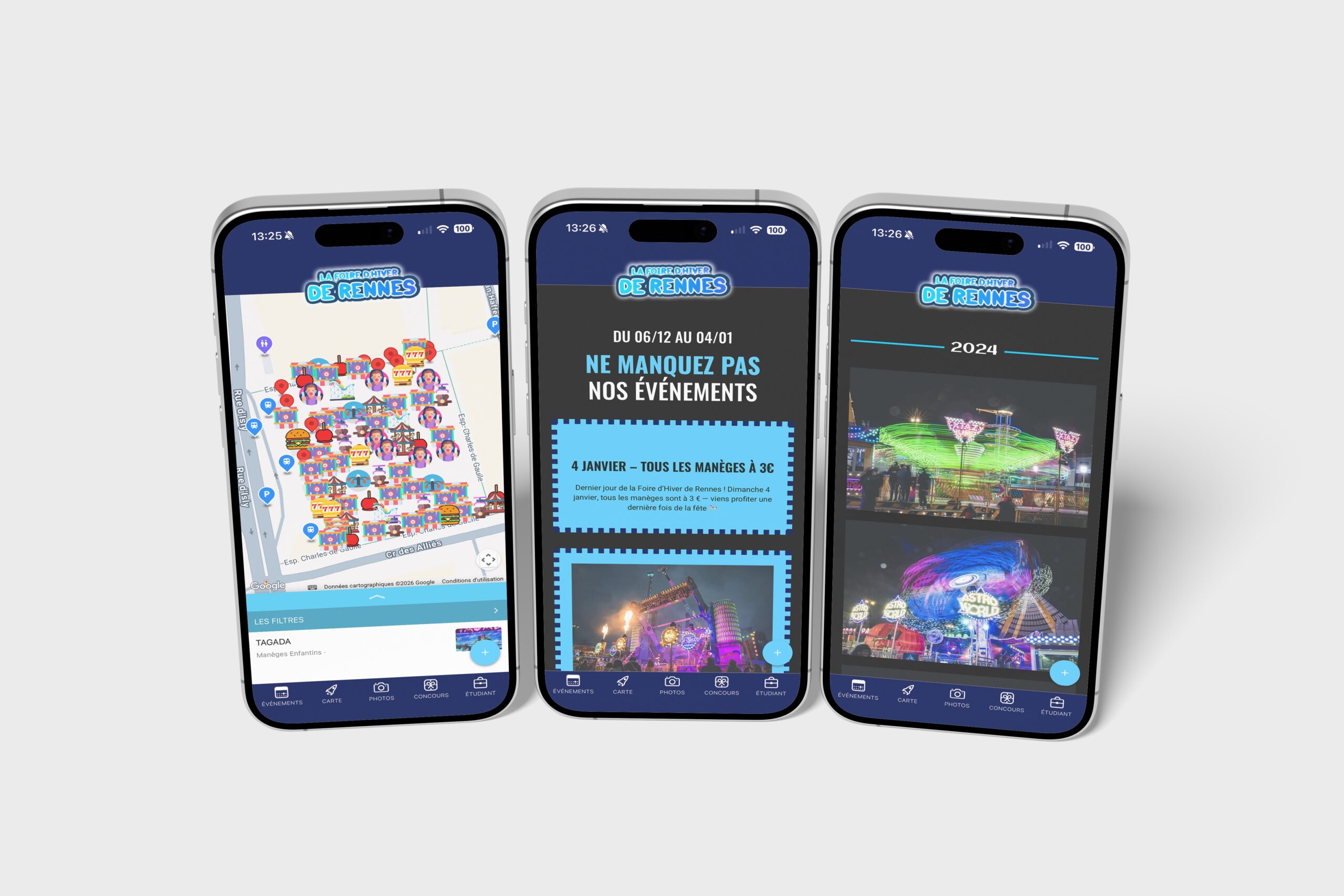 Découvrez l’application mobile officielle de la fête foraine de Rennes ! Profitez d’une carte interactive avec géolocalisation, d’un agenda des animations, de notifications en temps